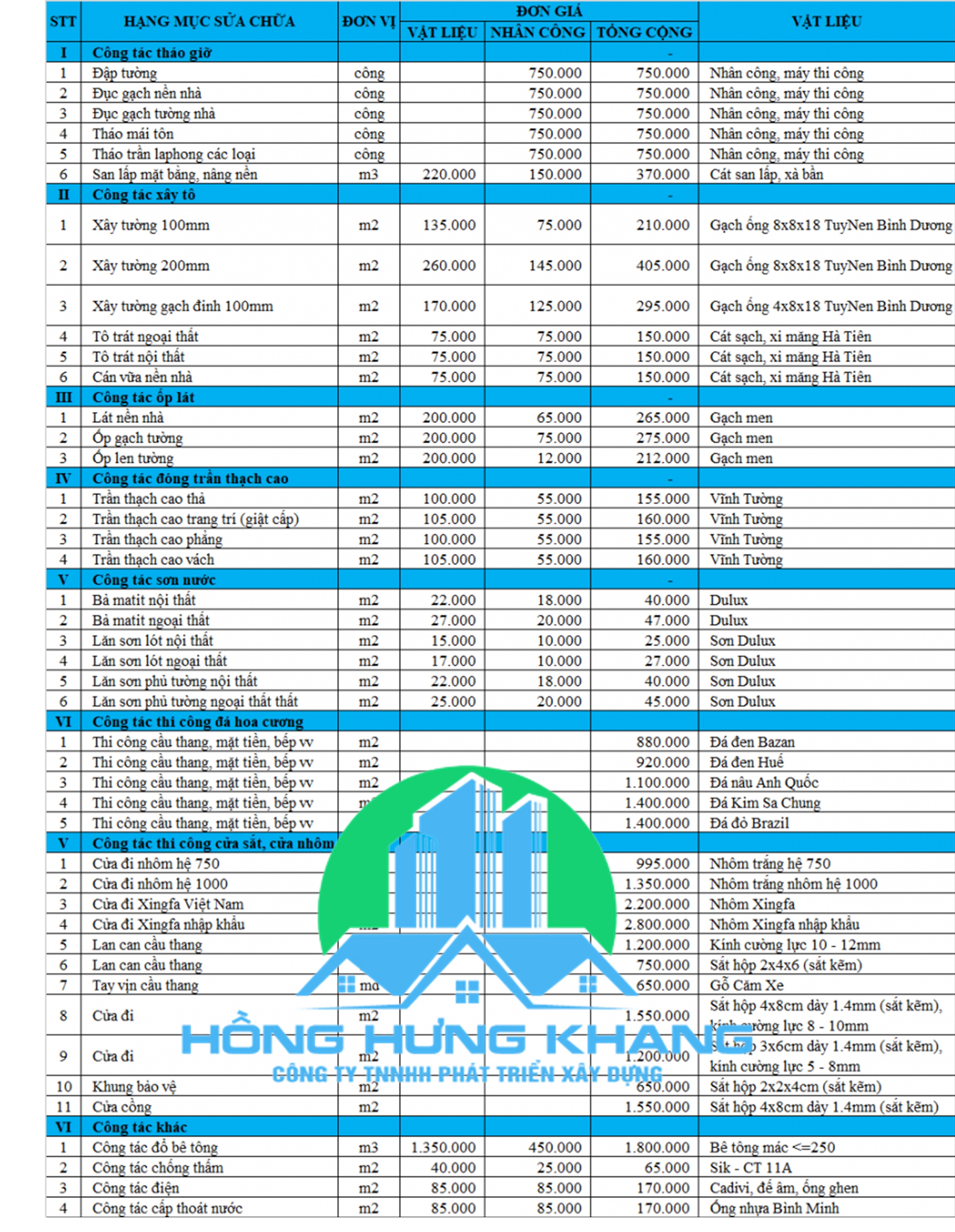 Mời quý vị bấm vào đây để tham khảo >>> đơn giá sửa chữa nhà